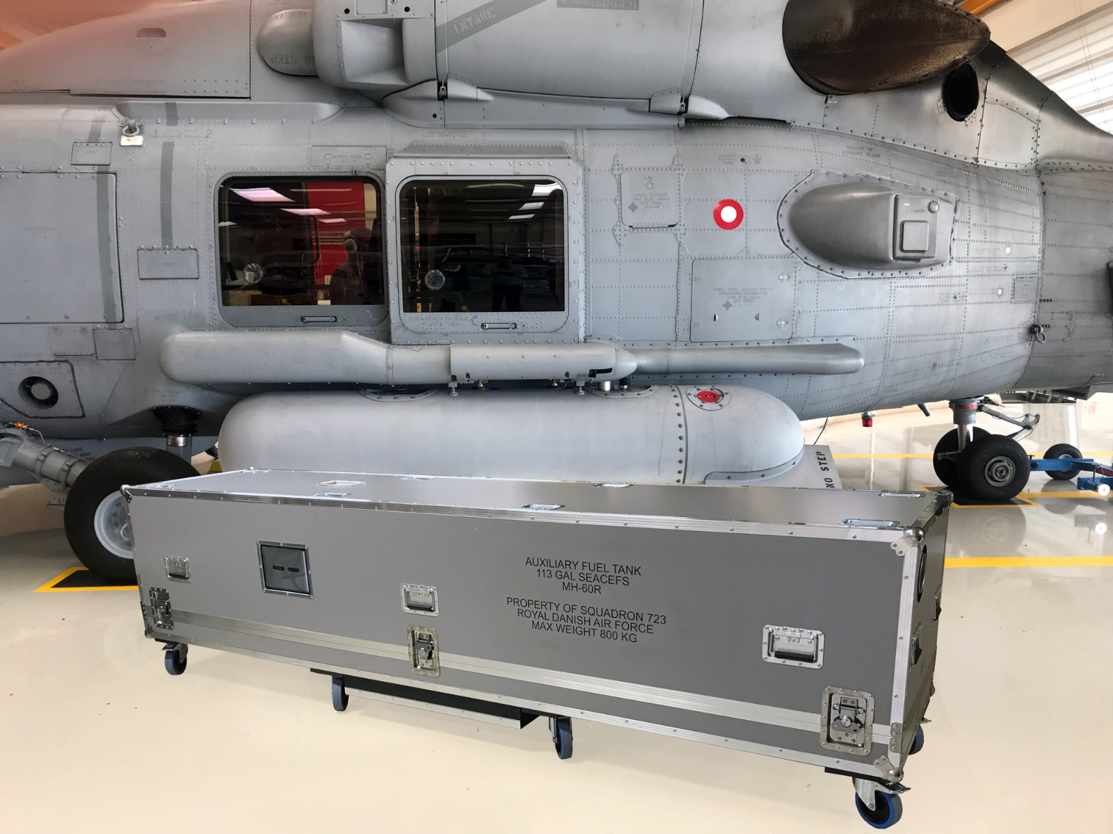 Professionel og robust specialbygget Flightcase for SEAHAWK fuel tank for det Danske Forsvar. Udviklet specielt til opbevaring og transport af Fuel tank for SEAHAWK. Flightcases International A/S er specialist i design, udvikling og produktion af robuste transportkasser til transport og opbevaring af alle former for militært udstyr.
