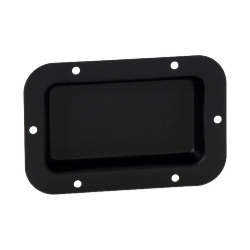 Dish black unpunched. Opening Size: 115 x 65 mm. Black. Powder coated steel 1 mm. 136 x 89 and depth 13 mm. Holes for mounting 5 mm.