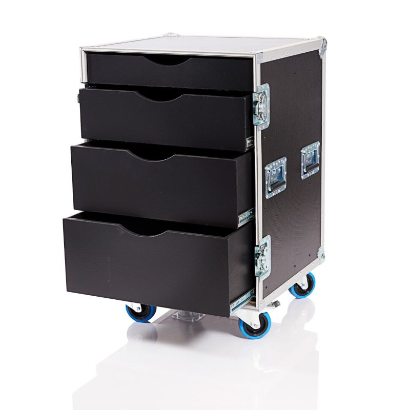 Flightcase Pro Drawer Series er en professionel Flightcase håndlavet i Danmark. Du får en premium Flightcase bygget af branchens bedste materialer. Denne Flightcase Drawer Case er ideel til transport og opbevaring af forskellige typer udstyr i i alt 4 skuffer.