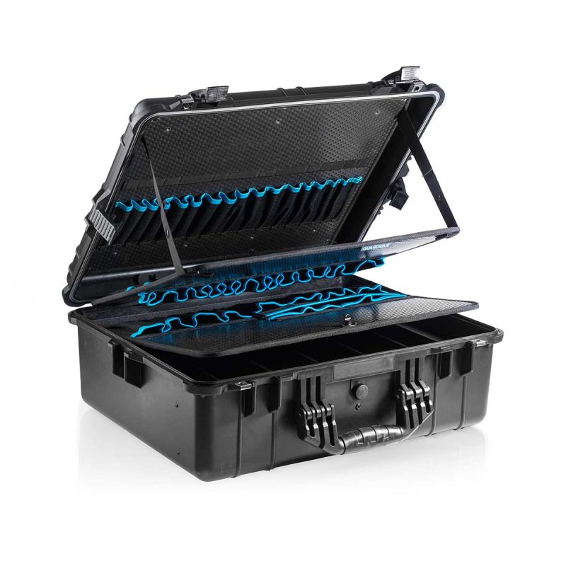 GUARDIQUE Apollo 6062T is our own produced tool case based on a standard Apollo 6062. In our Apollo 6062T, we have fitted professional tool inserts, consisting of 2 single and 1 double tool inserts (all removable). Furthermore, there are strong adjustable dividers in the bottom, which can all be removed if you want one large compartment.