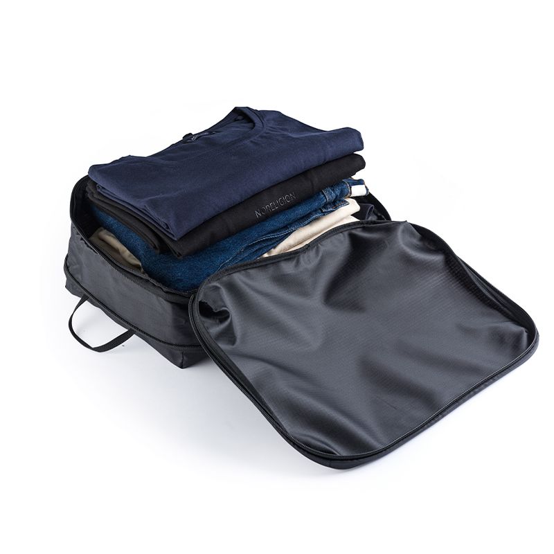 - Pladsbesparende Design: Den innovative dobbelt-lynlås kompressionsfunktion giver dig mulighed for at reducere volumen, så du får mere plads i din kuffert til ekstra ting.