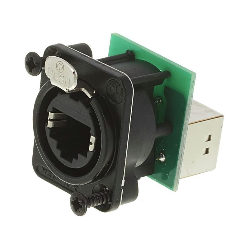 RJ45 Feedthrough Receptacle RJ45 feedthrough receptacle, black chrome D-shape flange.