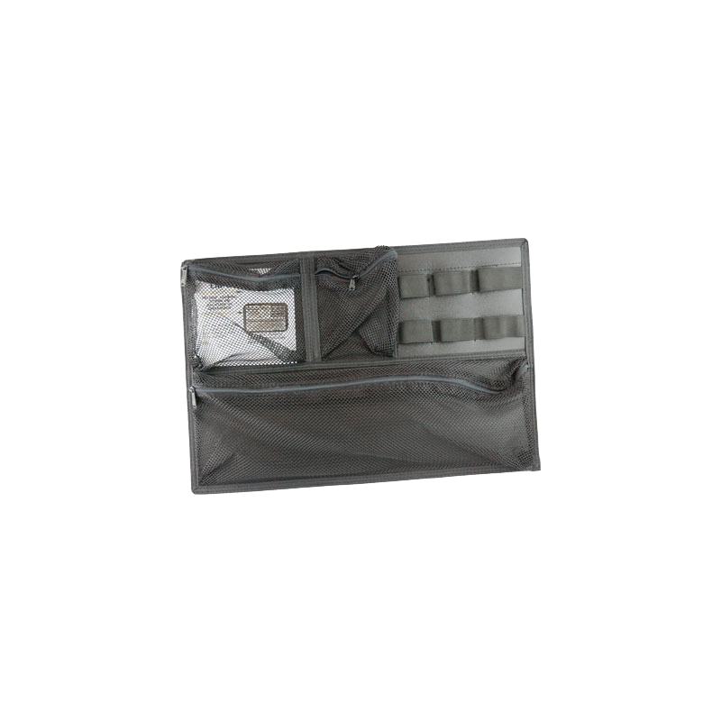 1509 Låg Indsats for Peli 1500 og Peli 1520 Case. Låg Organizer, lavet af simuleret læder eller ballistisk nylon med nylon lynlåse. En lang række lommestørrelser beskytter og holder dit udstyr organiseret. De installeres let med Velcro® strips (inkluderet). Sættet indeholder låg organisator (1 mesh lomme, 2 penneholdere, 2 ærmer åben top, 1 lommeregner lomme), 7/16 "selvskærende skruer